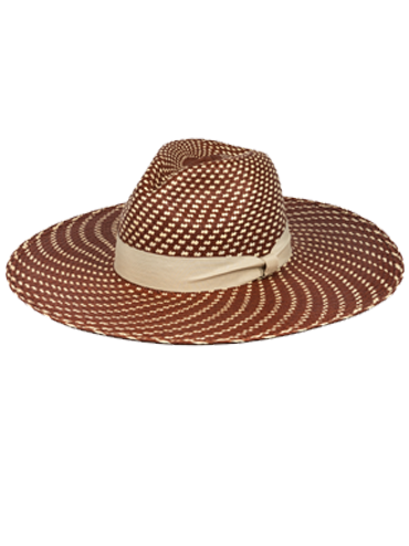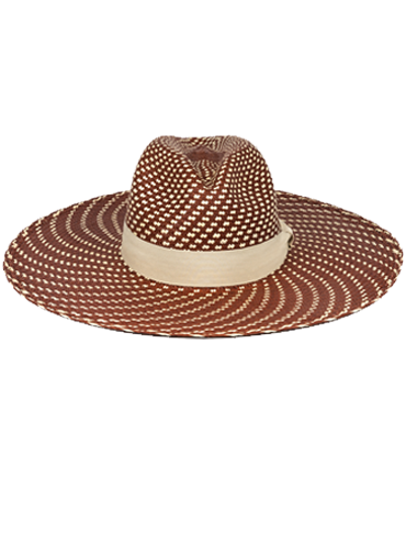Simoneta is a brown wide-brimmed hat with natural woven straw toquilla, which is a fiber known worldwide for its quality and beauty.